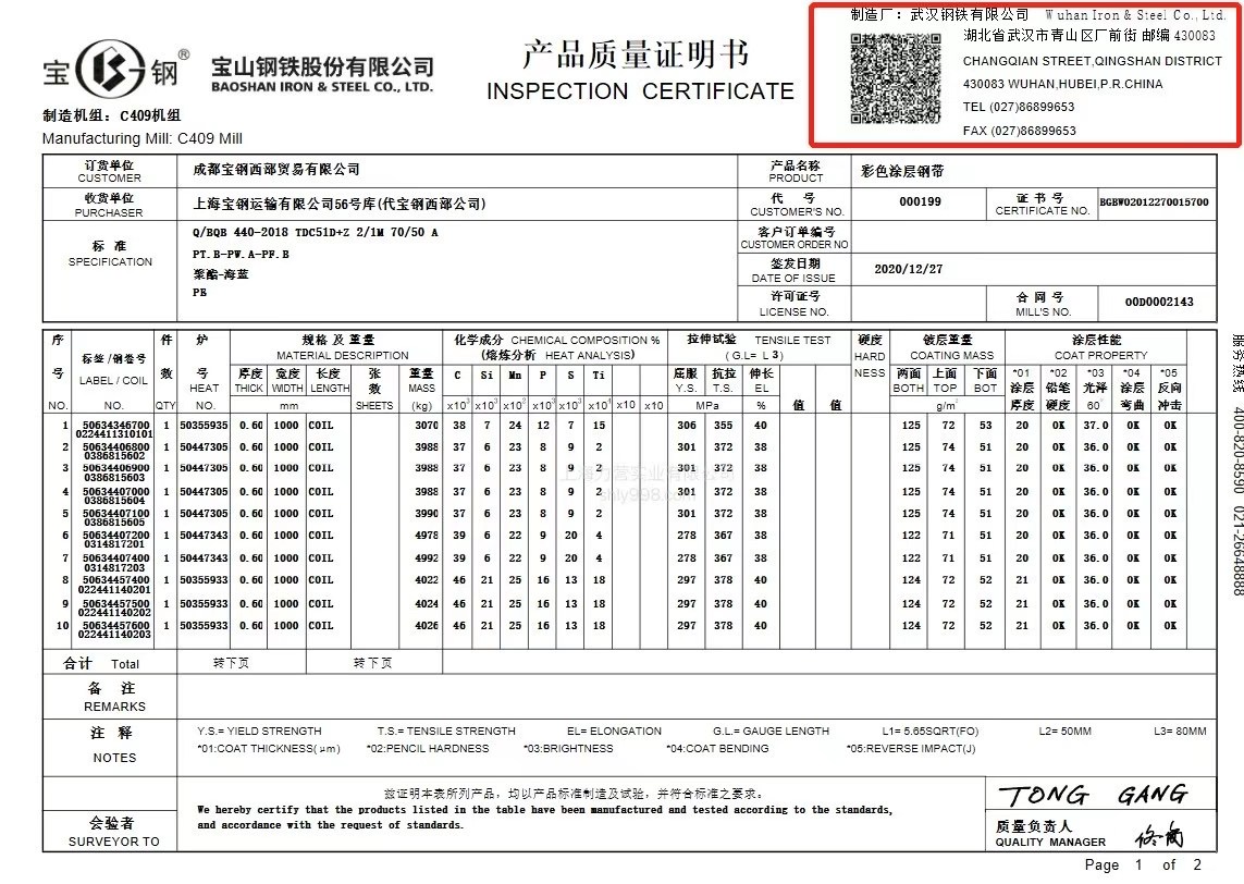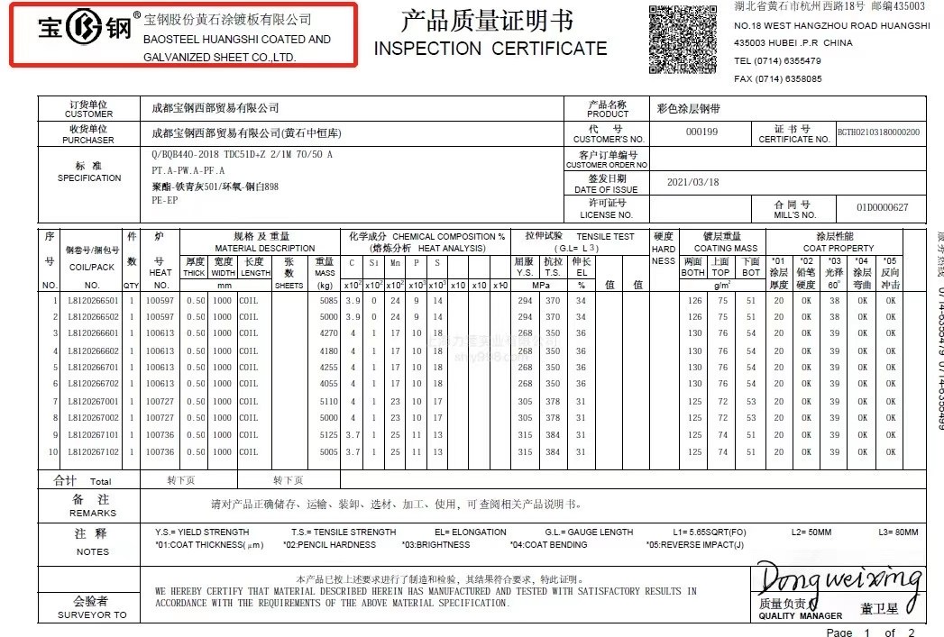 上海寶鋼 寶山基地|寶鋼青山青山基地|寶鋼黃石湖北黃石注:上海寶鋼,寶鋼青山、寶鋼黃石質保書除制造單元和生產地址不同,其余均一致!