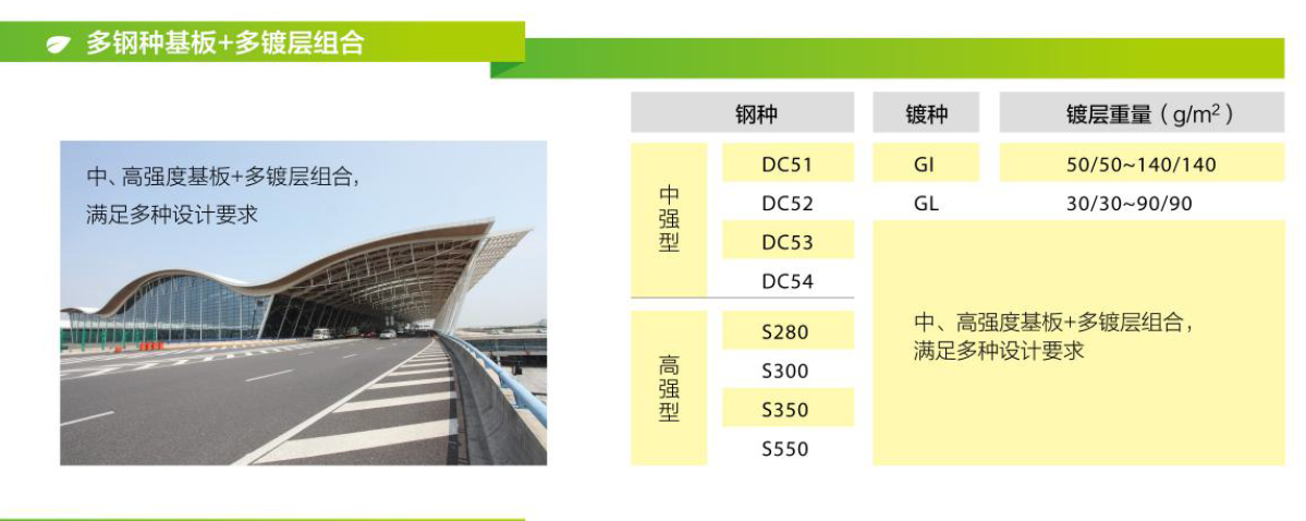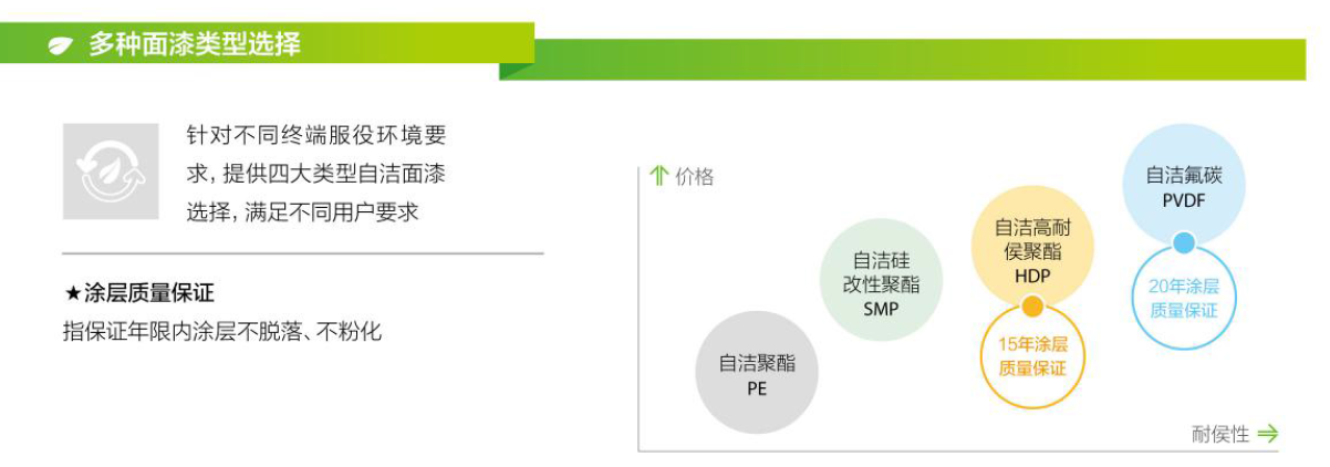 針對污染灰塵較大的地區(qū)的建筑用材,是一款擁有自我清潔功能的彩涂鋼板,特殊的“親水+抗玷污“面漆結(jié)構(gòu)設(shè)計,除具有優(yōu)異的高裝飾性及戶外耐久性,不需要人工清洗維護,只需要借助雨水的沖刷就能在空氣質(zhì)量較差的工業(yè)和城市地區(qū)保持屋頂和墻面持久潔凈。 |