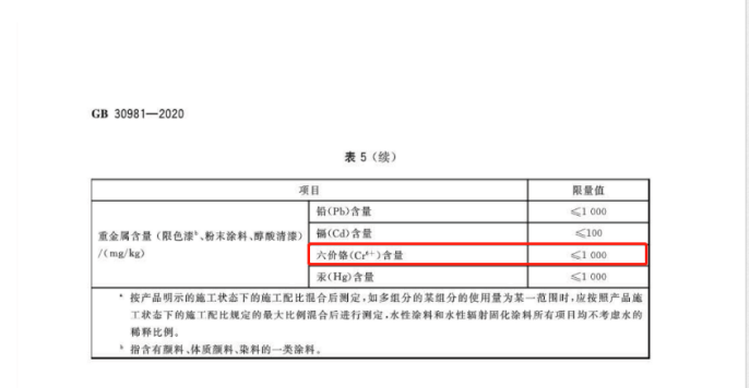 1、根據中華人民共和國工業和信息化部頒布,并于2020年12月1日實施的GB 30981-2020《工業防護涂料中有害物質限量》標準要求,其中明確了工業防護涂料中VOC及有害物質的含量,特別是有害重金屬六價鉻(Cr6+)的含量。